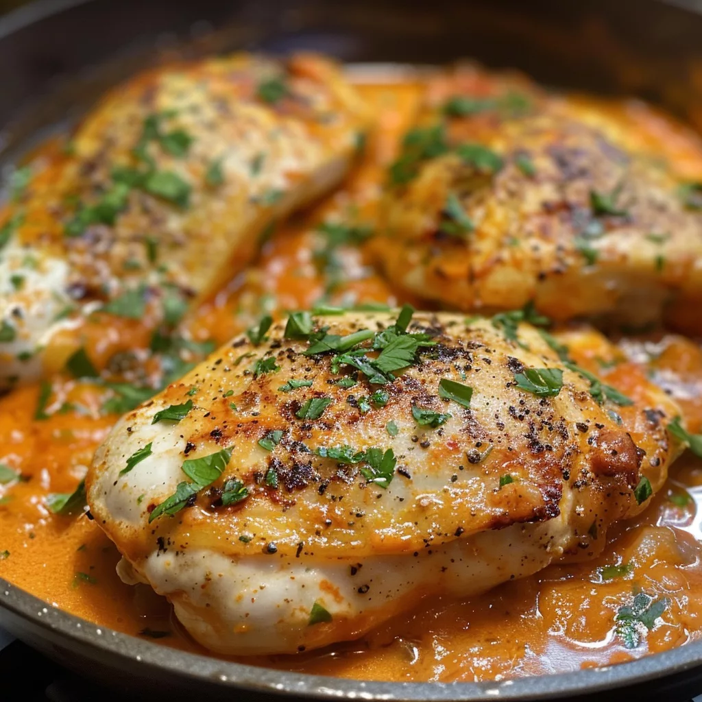 Plongez dans un monde de saveurs avec ces délicieux filets de poulet à la crème de tomate ! Cette recette combine la tendreté du poulet avec une sauce onctueuse et légèrement acidulée qui ravira vos papilles. Imaginez des filets de poulet dorés à perfection, nappés d’une crème de tomate parfumée aux herbes et à l’ail. Les arômes de basilic frais et de thym se mêlent harmonieusement à la douceur de la crème et à la vivacité de la tomate. Que vous soyez un cuisinier débutant ou confirmé, ce plat deviendra rapidement un favori de votre répertoire culinaire. Les textures fondantes du poulet et la richesse de la sauce créent une expérience gustative incomparable qui convient parfaitement à un dîner en famille ou à une occasion spéciale.
